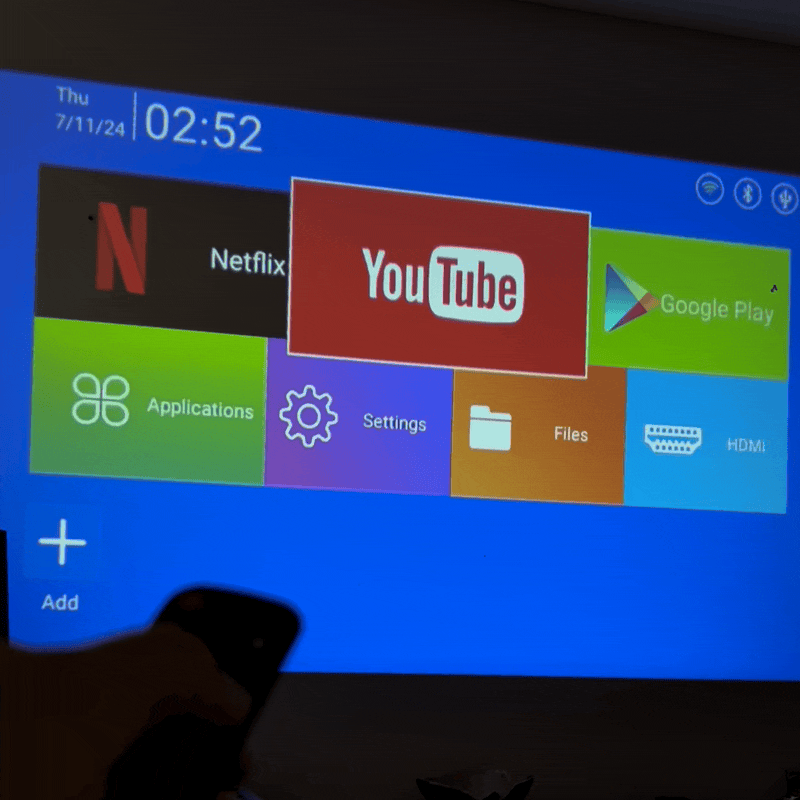 Projektorius aprūpintas integruota Android operacine sistema, todėl nereikia prijungti jokių papildomų įrenginių. Jame jau yra „YouTube“, „Netflix“ ir „Google Play“ parduotuvė, leidžianti atsisiųsti daugybę įvairių programų – nuo ​​muzikos ir TV iki filmų ir žaidimų. Šis projektorius veikia kaip planšetinis kompiuteris, jo ekranas projektuojamas tiesiai ant sienos arba lubų, todėl naudotojui suteikiama neįtikėtinai patogi patirtis.